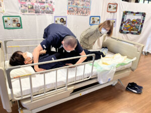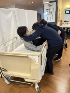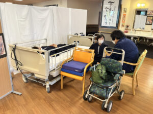 先日は家族介護教室を開催致しました。栄養指導やおむつ交換、車椅子への移乗介助法などにたくさんの方々がご参加くださいました。「オムツの正しい充て方がわかってよかった」「栄養指導がとてもためになった」「腰を痛めない介助方法がわかってよかった」などたくさんのご感想をいただきました。次回開催も予定しておりますのでたくさんのご参加をお待ちしております。
